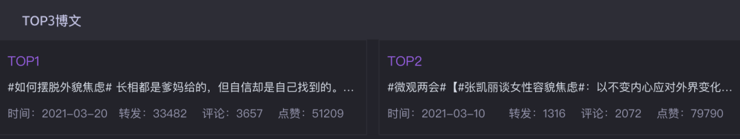 在微博相关热门话题中,排名前2的微博内容也都是和拒绝容貌焦虑相关;
