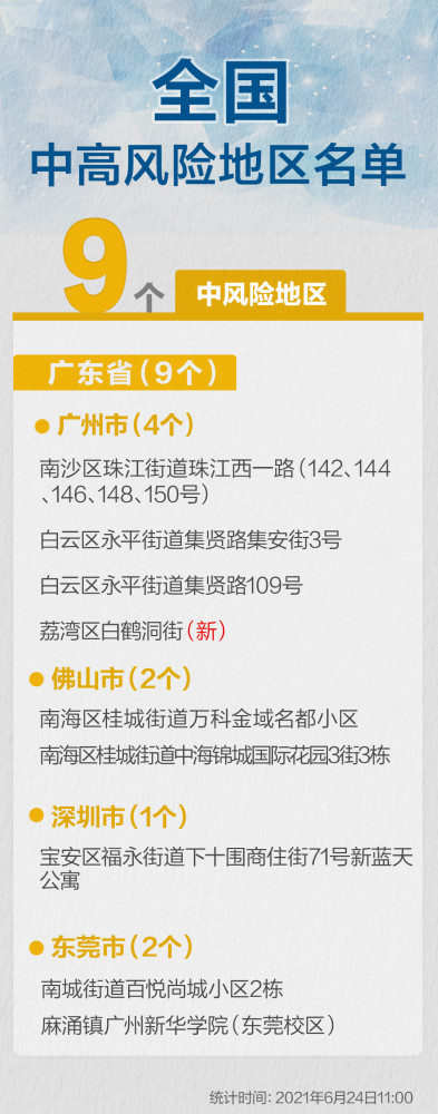 另据北京日报,全国现有9个中风险地区,均在广东省。