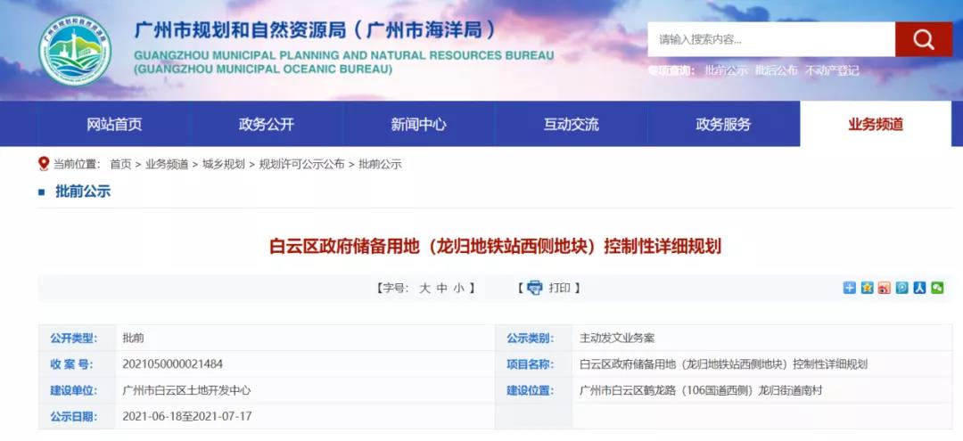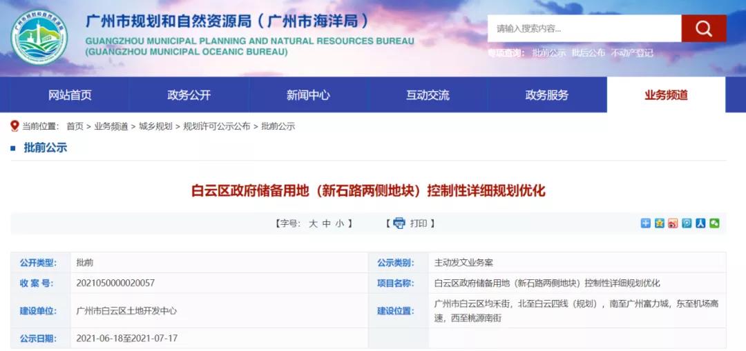 6月18日,广州市规划和自然资源局分布了两则白云区政府储备用地的控制性详细规划优化方案。