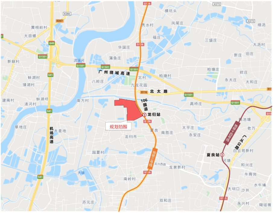 根据公示,项目地块位于白云区龙归街道南村,106国道、龙归地铁站西侧,规划范围约27 公顷。