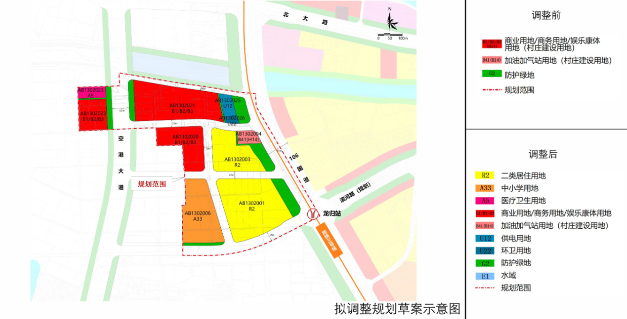 一则是新石路两侧地块;一则是龙归地铁站西侧地块。