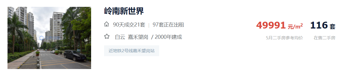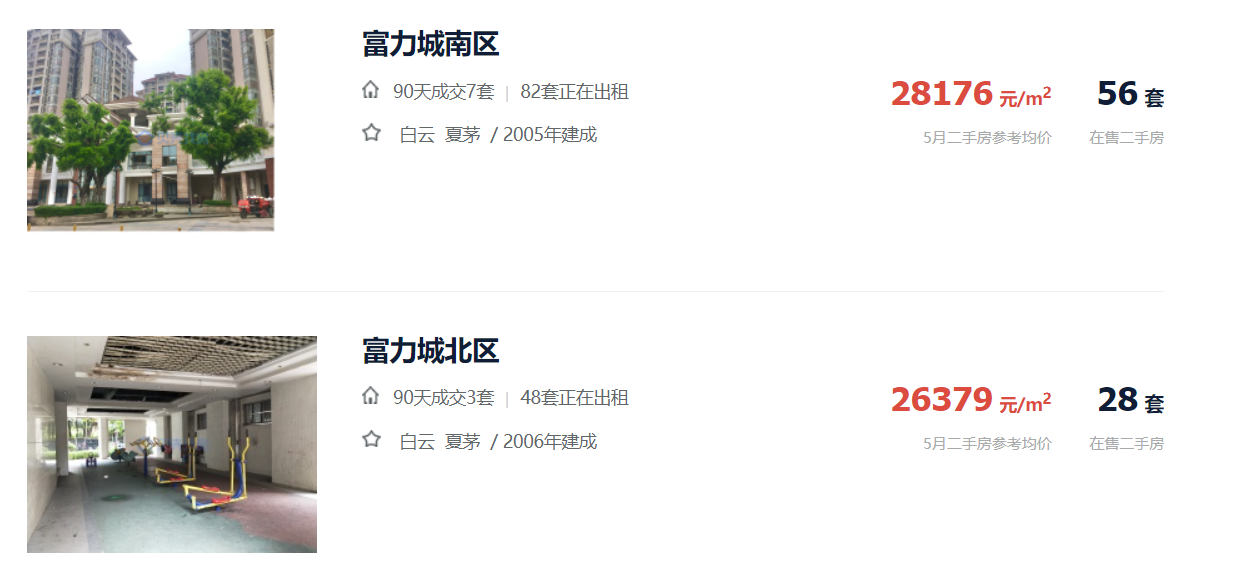 二手房方面,较大型的开发只有广州富力城,其中富力城南区均价2.81万元/㎡,北区均价2.64万元/㎡。