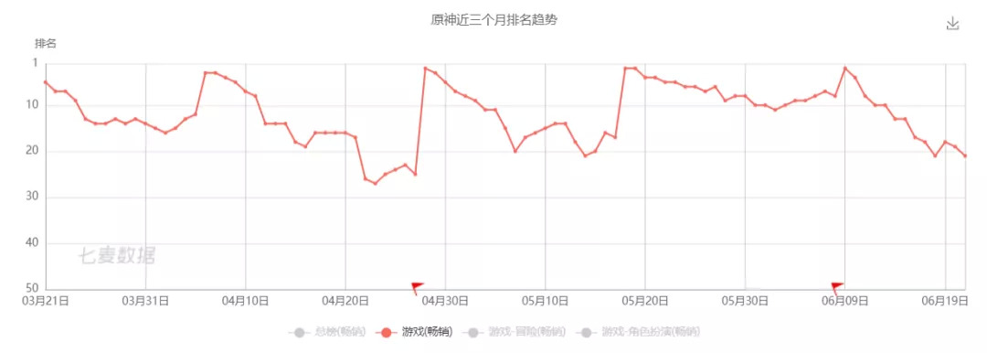 其他游戏并非毫无机会:至少可以凭借优质的游戏内容,在版本更新时一跃冲进畅销榜前列,近几年崛起的新秀大多如此,典型的代表有《原神》《阴阳师》。
