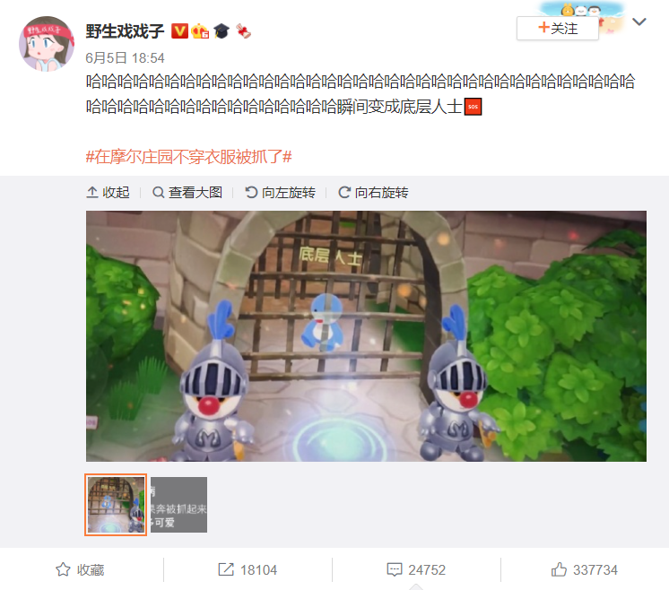 #在摩尔庄园不穿衣服被抓了#、#摩尔庄园BUG好好笑#、#在《摩尔庄园》泡澡被偷窥#、“不守摩德”、“你们要是这么玩我可就下载了”等话题、游戏梗屡屡登上微博热搜。