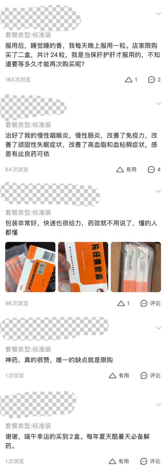 据一家销售片仔癀的天猫药房店铺页面评价显示,大多数消费者对于片仔癀胶囊药品的评价好评居多,吐槽较多的点主要在于药比较难买,得靠抢购或者运气。