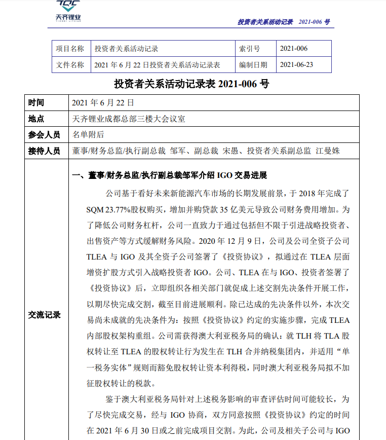 天齐锂业发布消息,公司在22日共接待124家机构调研。公司在调研交流中表示:近两年,因为债务、资金等问题,公司锂盐加工业务规模扩张进度放缓,目前管理层正全力以赴于“降负债、去杠杆” 和奎纳纳氢氧化锂项目调试等工作,加快项目调试进度,力争实现2021年底一期氢氧化锂项目全线贯通并产出第一吨产品,于2022年第四季度达到设计产能。