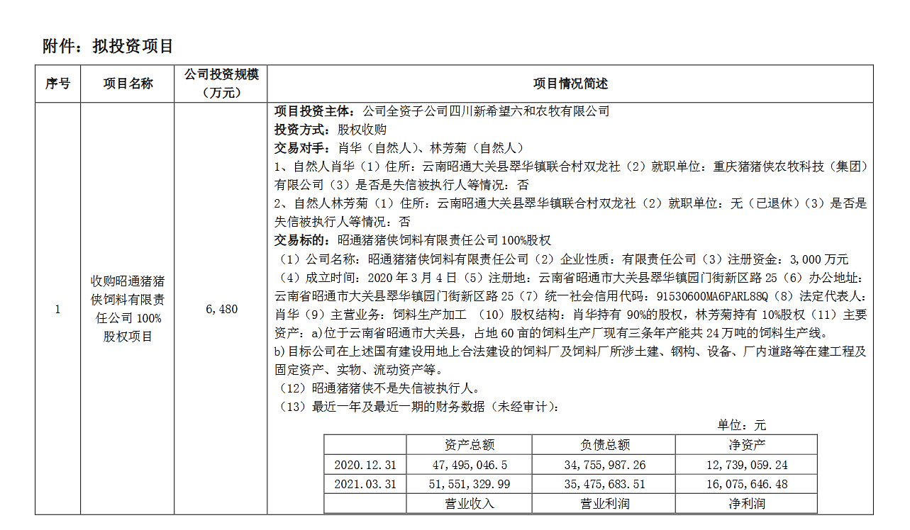 “昭通猪猪侠”占地 60 亩的饲料生产厂现有三条年产能共24万吨的饲料生产线。“漳州红杉生物”的收购同样是为了新希望饲料产业需要,布局云南与福建市场。