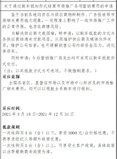 为了偿还这些供应商的债务,宝能集团推出了“以车抵债”的措施。根据一些员工给出的措施截图,可以看到宝能计划通过以一部分新车来抵一些供应商的拖欠款项。