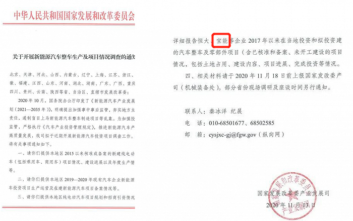 宝能被点名,要求上报2017年以来在当地投资和拟投资的汽车整车及零部件项目,包括土地占用、建设内容、项目进展、完成投资等情况。