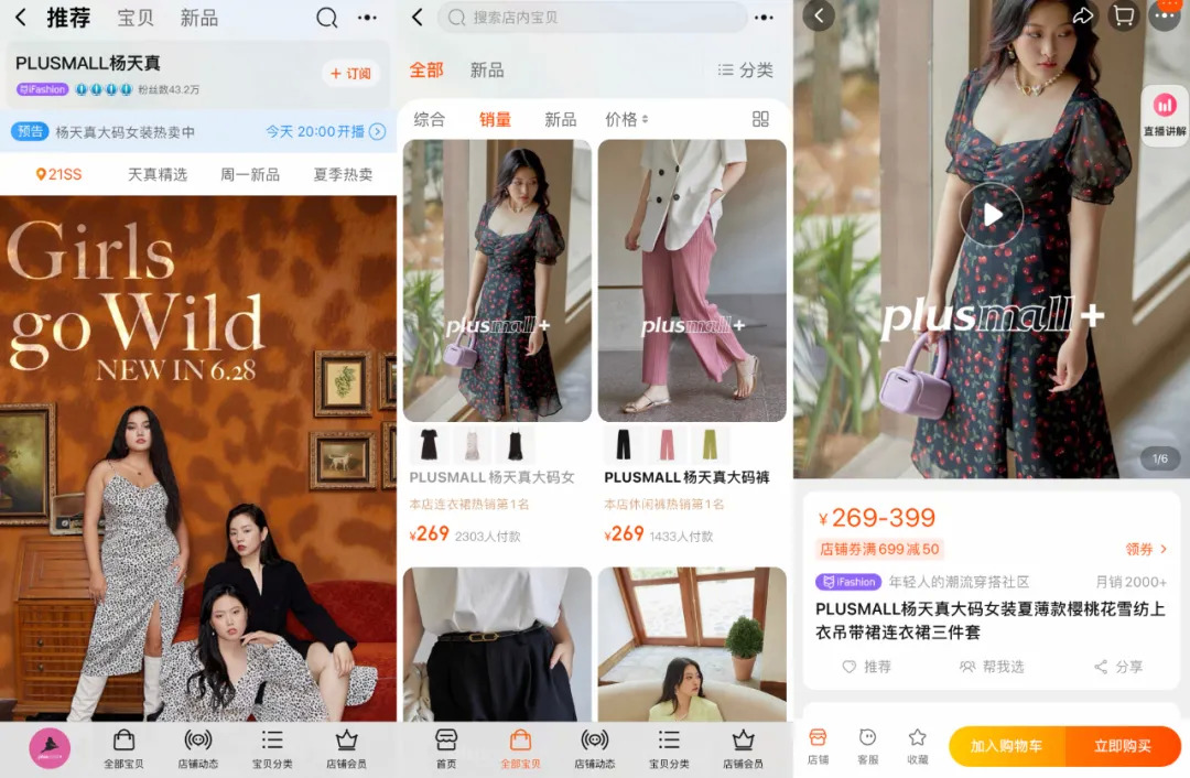 而她自己创办的大码女装品牌plusmall+,在杨天真不遗余力、身体力行地“带货下”,根据媒体报道,上线十个月销售额过亿,销量最高的商品是单价329元的连衣裙,累计销量超过2600件。
