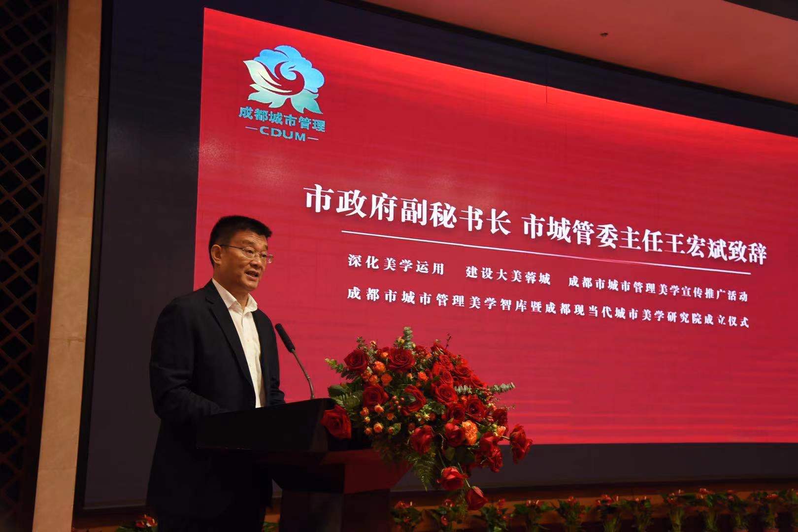 成都市政府副秘书长、市城管委主任王宏斌在致辞中指出,强化美学运用,建设美丽蓉城,必须研究城市美学,推动美学艺术在城市管理领域的深化运用,这既是贯彻落实习近平总书记重要讲话精神的政治要求,更是成都城管主动探索城市管理与美学艺术结合路径的生动实践。在向着第二个百年奋斗目标迈进的新征程上,城市美学愈加深入地参与到经济社会发展的创新变革当中,立足新发展阶段,树立新发展理念,服务新发展格局,城市美学大有可为。答好“城市美学”这道时代命题,需要集聚各行业、各领域专家学者的智慧与力量。王宏斌表达了对专家学者和城市管理同仁的殷切希望,期望学术界、艺术界、传媒界的各位专家学者,积极咨政建言,将城市美学更好地运用到城市管理当中,在城市景观塑造、市政设施美化、固废设施建设等方面贡献力量,同时也恳请专家学者能够与成都城管一道,共同深化城市美学理论研究,共同探索城市美学构建路径,共同推进城市美学价值表达,共同开展城管干部美学素养教育培训,以城市美学的营城理念,提升城市的品质与价值。