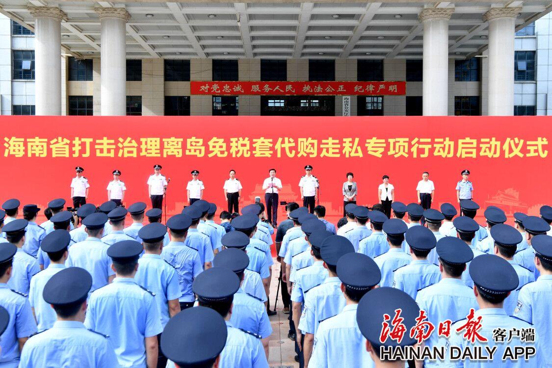 省委常委、政法委书记刘星泰出席仪式并讲话。副省长、省公安厅厅长闫希军主持启动仪式。刘星泰强调,各级各部门要全力以赴开展好这次专项行动,打出新声势、治出新成效、管出新水平。要坚持“打防结合、以防为主、强化源头、标本兼治、综合治理”,要破大案、打团伙、摧网络,重点打幕后、断资金、打“内鬼”。要加强源头管理,清理整治非法销售行为,夯实免税经营主体的责任,加强对寄递行业的监管,严厉打击非法揽货、非法寄递等行为。要积极发动群众、依靠群众,打一场反走私的人民战争。要加强法制宣传教育,引导来琼旅客、本地居民依法依规享受政策,自觉拒绝“套代购”走私活动。要出台举报奖励办法,充分调动群众举报走私的积极性,形成“多数人管少数人”的有利局面。
