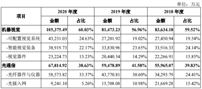 招股书显示,凌云光的营收不止包含机器视觉产品出售,还包括光通信产品,主要为基于行业高端解决方案的光纤器件与仪器代理产品,及部分自主的光接入网产品。