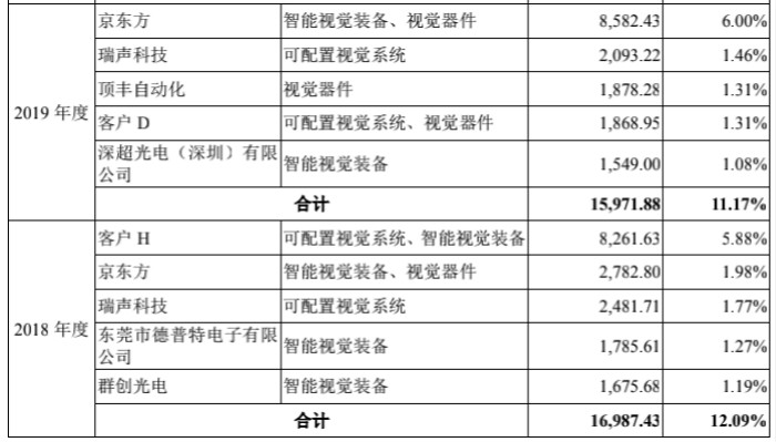 实际上,这也是周期性波动的一个环节。2019 年度,凌云光机器视觉业务前五大客户新增顶丰自动化、客户D、深超光电(深圳)有限公司,减少了客户 H、群创光电、东莞市德普特。