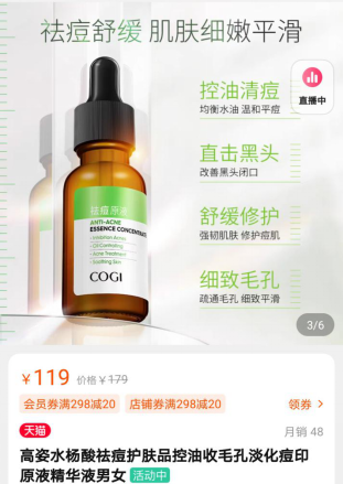 “姐妹!刷酸了解一下!你刚开始先用低浓度的产品入门,间隔使用建立耐受,注意要逐步加大使用量及频率。”