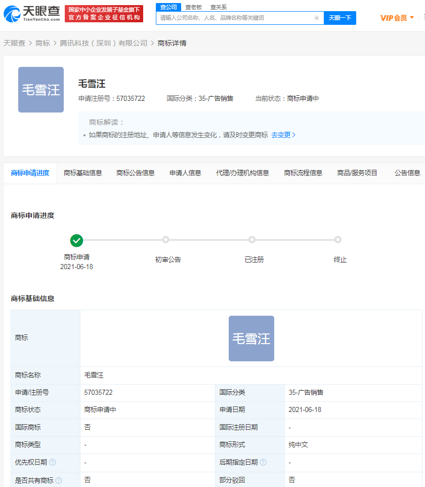 腾讯申请注册多个谐音商标,含“毛雪汪”“拔丝评果”等