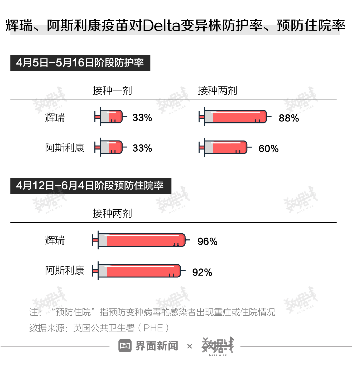 英国公共卫生署(PHE)一项针对“4月5日至5月16日疫苗接种者”的研究报告显示,疫苗对Delta变种毒株具有一定防护率。接种一剂辉瑞、阿斯利康疫苗对Delta变异株的防护率在33%,接种两剂对Delta变异株的防护率最高可达88%。