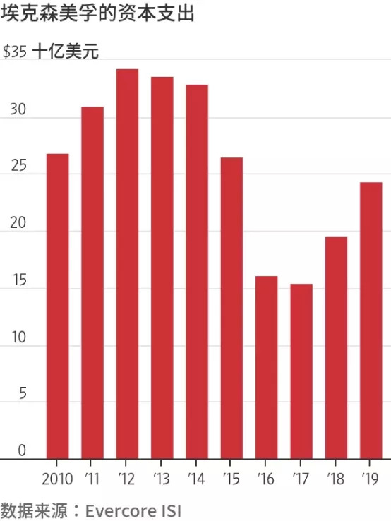 投资银行Evercore ISI的数据显示,2009年至2019年期间,埃克森美孚的资本支出为2610亿美元。