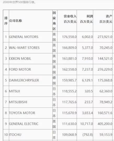 2000年世界500强排行榜前十