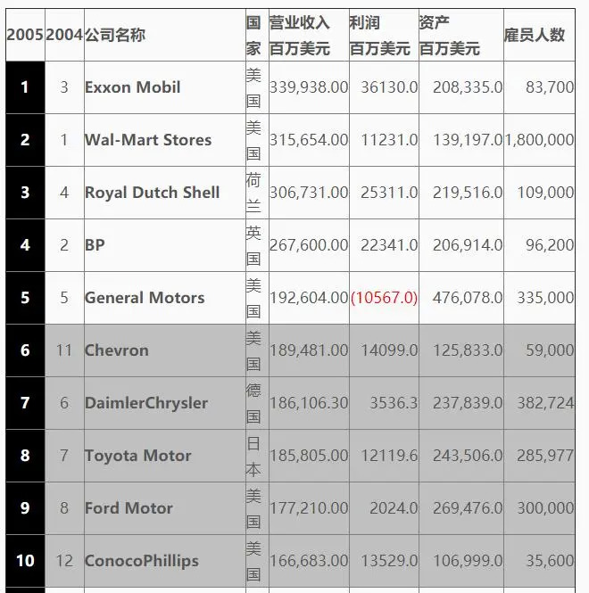 此后,埃克森美孚便常年在世界500榜单前5强。2006年,更是一举跃居世界第一。