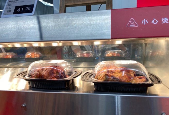 在麦德龙草桥店,烤鸡产品一直处于一经出炉便被抢光的状态。尽管麦德龙北京十里河和万泉河的门店也销售同样的烤鸡。不过烤鸡爱好者都知道,山姆会员店、盒马X会员店也可以购买到类似的烤鸡,价格甚至更低。
