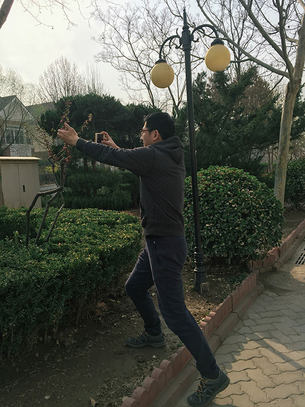 “我对拍照片是上瘾了。”迎着灰黄雾霾里的太阳,张强摆出练武的马步,侧头眯眼,拍着莱蒙湖别墅里的玉兰花。