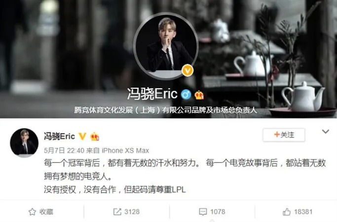 《你微笑时很美》播出前,腾竞体育品牌及市场总负责人冯骁发布了这样一条微博:“每一个冠军背后,都有着无数的汗水和努力。每一个电竞故事背后,都站着无数拥有梦想的电竞人。没有授权,没有合作,但起码请尊重LPL。”英雄联盟赛事官方、诸多LPL电竞俱乐部、选手、解说都点赞了该微博。