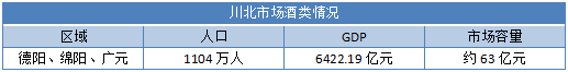以德阳、绵阳、广元为核心组成的川北市场,是除成都外消费能力比较强的市场,尤其是GDP排第2、第4的绵阳和德阳,这两个市场占据了约50亿的市场份额。