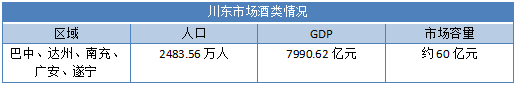 川东市场是较为典型的山地、丘陵型市场,由于本土强势品牌较少,消费档次也较低,但由于人口数量较大,川东市场仍然有很大的市场容量。