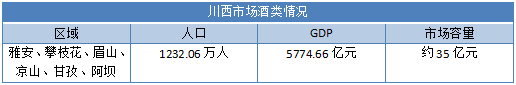 四川酒类还有一个重要的板块为川西市场,由眉山、雅安、攀枝花和凉山、甘孜、阿坝三州组成,川西六市(州)的消费量偏低。