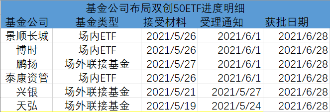 具体来看,景顺长城、博时、泰康资管获批的产品均为场内ETF,鹏扬、兴银、天弘获批的则为场外联接基金。