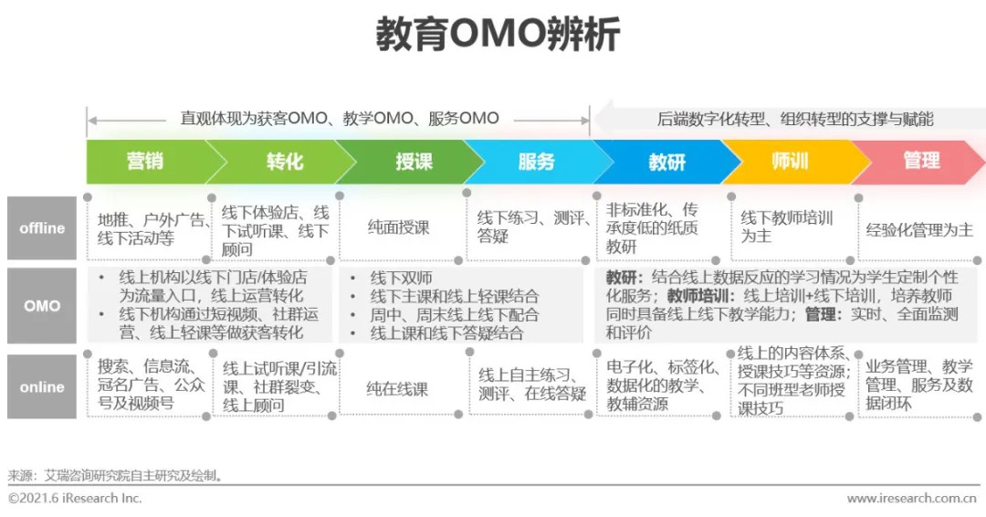OMO表象是前端获客、教学、服务环节的线上线下融合;本质是数据驱动的、线上线下互为延伸的更高效的运营模式。
