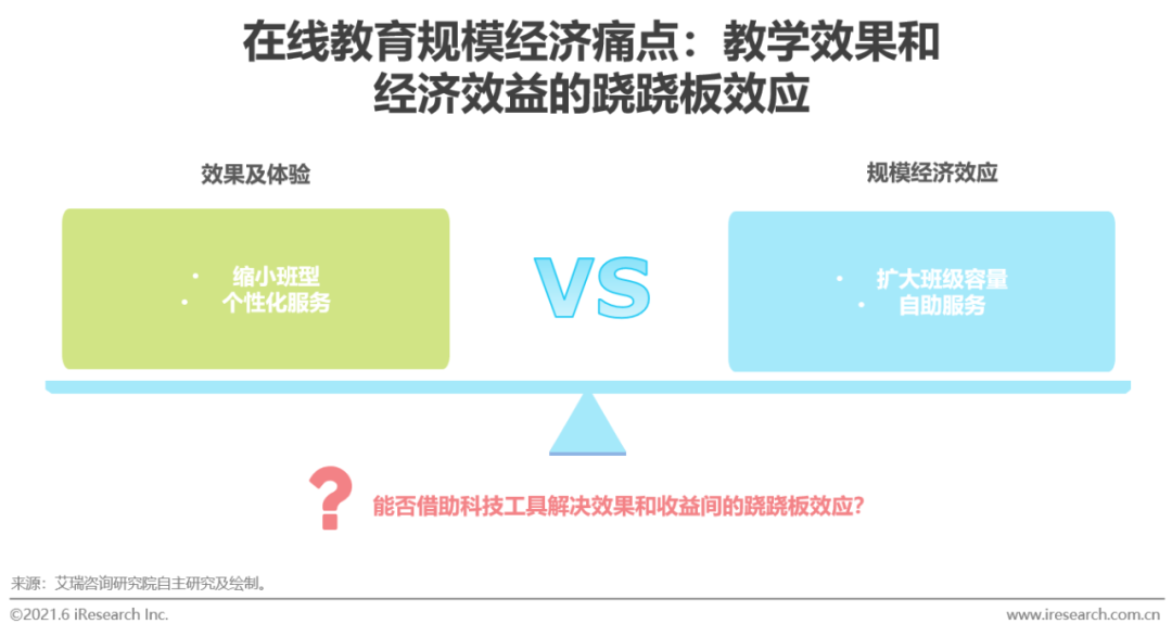 尽管脑科学研究持续取得进展,但人脑高级功能秘密短期内仍无法打开,教育过程一直被视为“黑箱”。但如果转换路径,回归到“教”与“育”,则“教”即知识传授环节的因果关系直接,可以借助AI等技术实现兼具规模化与个性化的教学,如汇聚优秀教师进行课程录制和后期的切课,并借助知识图谱等AI技术进行个性化的推荐和诊断,让低线城市儿童也能接触到优质的教育资源,助力知识资源真正实现普惠。从资源供给方的角度,则通过成本前置实现了更强的规模经济效应。但与此同时,这一过程需要大量的学习、测评数据积累和资源投入,以及政策的鼓励与支持,需要多年的探索,也只有资源充沛的大型公司具备相应研发能力。在“育”的环节,可预见的未来内,真人教师现场的言传身教仍必不可少,但老师将更多是引导者的角色,挖掘不同学生的不同潜力。而对于校外培训机构,优质的教育理念将成为其更重要的竞争力。
