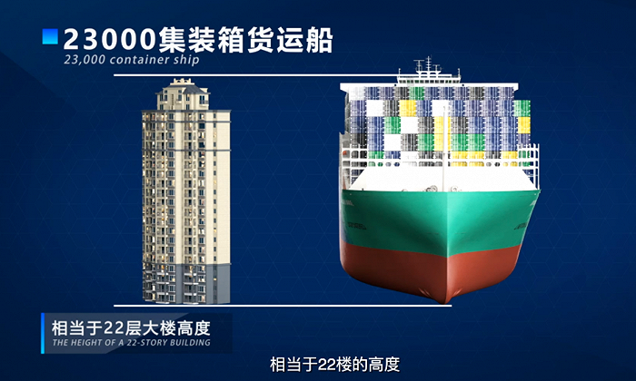 中国船舶集团称,该系列船可承载22万吨货物,一次能装下2.31万个标准集装箱,可运载2200个40英尺冷藏集装箱,最大堆箱层数达24层,相当于22层楼的高度,堪称海上“巨无霸”。