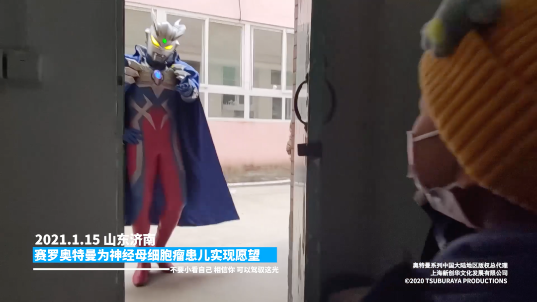 赛罗奥特曼为济南患病儿童晨晨以及他的小伙伴们圆梦。愿这份光之力量,守护着你们无畏前行!