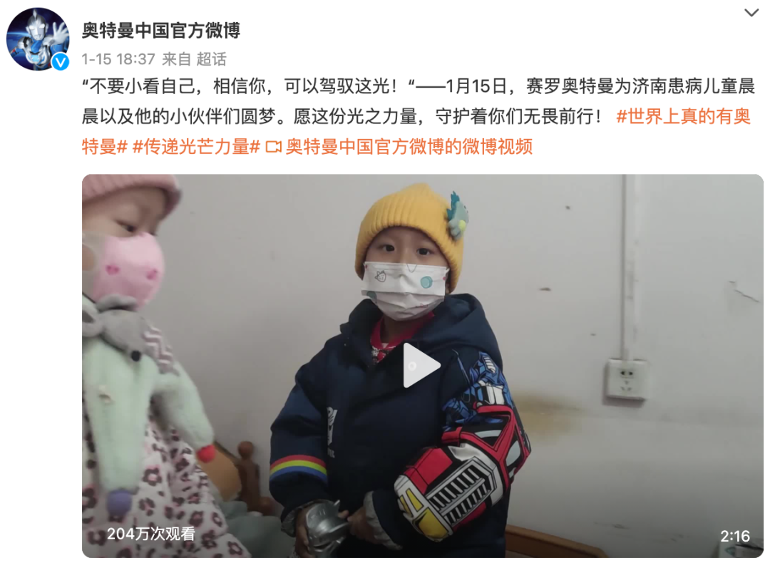 其实这件事之前,在基金会的帮助下,奥特曼中国官方也为不少想要见到奥特曼的病患儿童,实现了愿望。