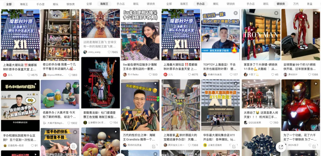 先是在小红书、B站等平台找到KOC(关键意见消费者)出图文或者视频评测,给玩家种草。大部分吸引过来的都是没什么经验的小白玩家,然后货源垄断。玩家如果对一款周边感兴趣,搜遍全网可能也只有一两家淘宝店在卖,很多还是官方未发售的假货。