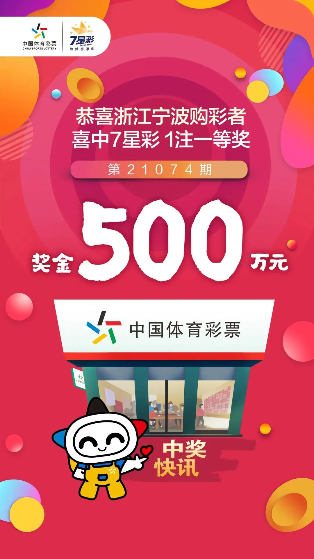 根据数据显示,宁波中出的这注一等奖出自位于宁波市西门街道柳庄街70号的3302014082体彩实体店。中奖彩票为一张单式多期票,共投注了6期,票面上5注号码,第三注号码中得了本期一等奖,揽获奖金500万元。