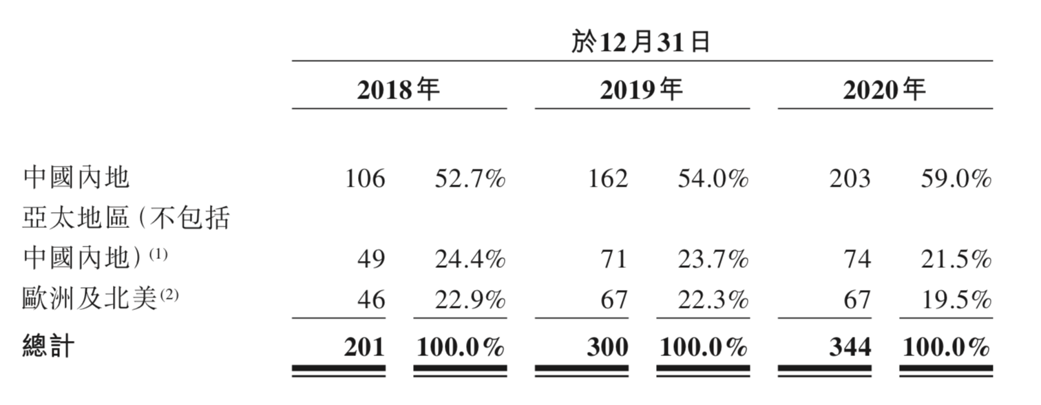 招股书显示,2020年,APM Monaco的总收入为19.2亿港元,其中中国内地占57.2%,除中国内地以外的亚太地区占19%,欧洲和北美占23.8%。
