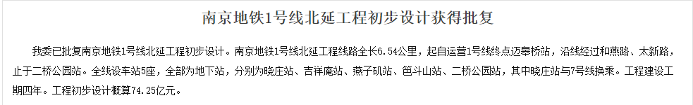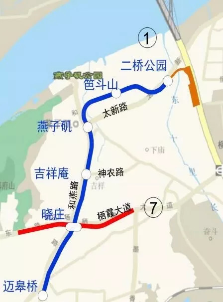 地铁1号线北延工程南起既有1号线迈皋桥站,北至终点二桥公园站,将迈皋桥街道、燕子矶片区与既有1号线连接。