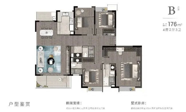 宝能滨江府在售A地块1-4号楼,为A地块16-17F高层住宅,户型建筑面积约123、139、176㎡,全系改善户型,销许均价36368-37586元/平,首付无具体要求,两梯两户,拟交付时间为2023年12月31日。