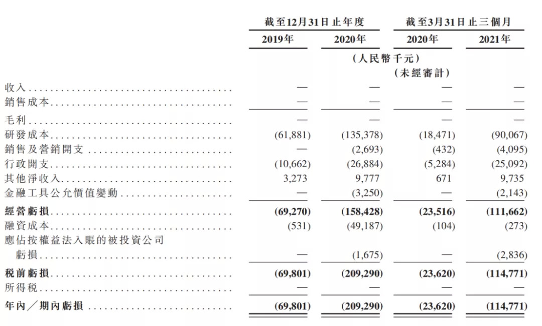 《招股书》显示,2019年、2020年,以及2021年第一季度,微创医疗机器人分别录得亏损净额6980.1万元、2.09亿元,以及1.15亿元。微创医疗机器人在《招股书》中解释称,亏损主要由于公司的研发成本及行政开支所致。