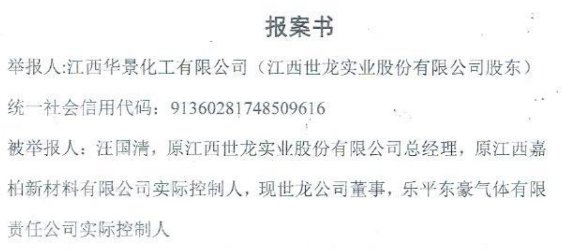 有关世龙实业的事还不仅仅于此。近期界面新闻记者获悉,有自然人甚至公司对世龙实业董事汪国清进行举报,内容指向汪国清在世龙实业任职总经理期间的种种。