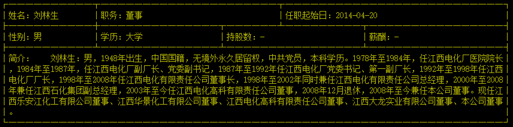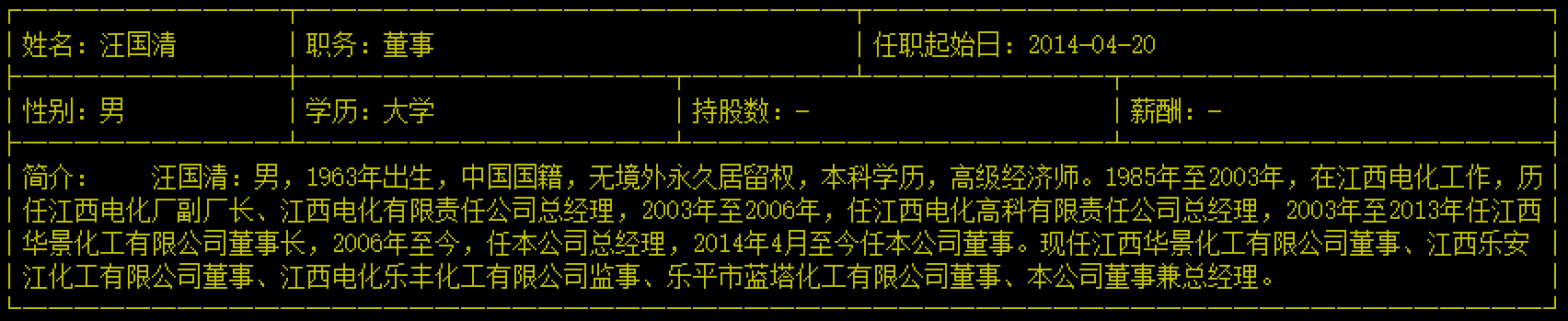 从公开信息看,汪国清本科学历,高级经济师,1985年至2003年,在江西电化工作过,历任江西电化厂副厂长、江西电化有限责任公司总经理;2003年至2006年,任江西电化高科有限责任公司总经理;2003年至2013年任江西华景化工有限公司董事长;2006年至2016年11月,任世龙实业总经理,2014年4月至今任世龙实业董事;2018年10月至2019年1月,就职于云南宝龙硅业有限公司,任董事长兼总经理。