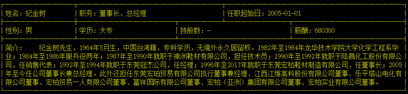 同时,汪国清还是宏柏新材(605366.SH)的董事,任职起始日为2009年1月1日。