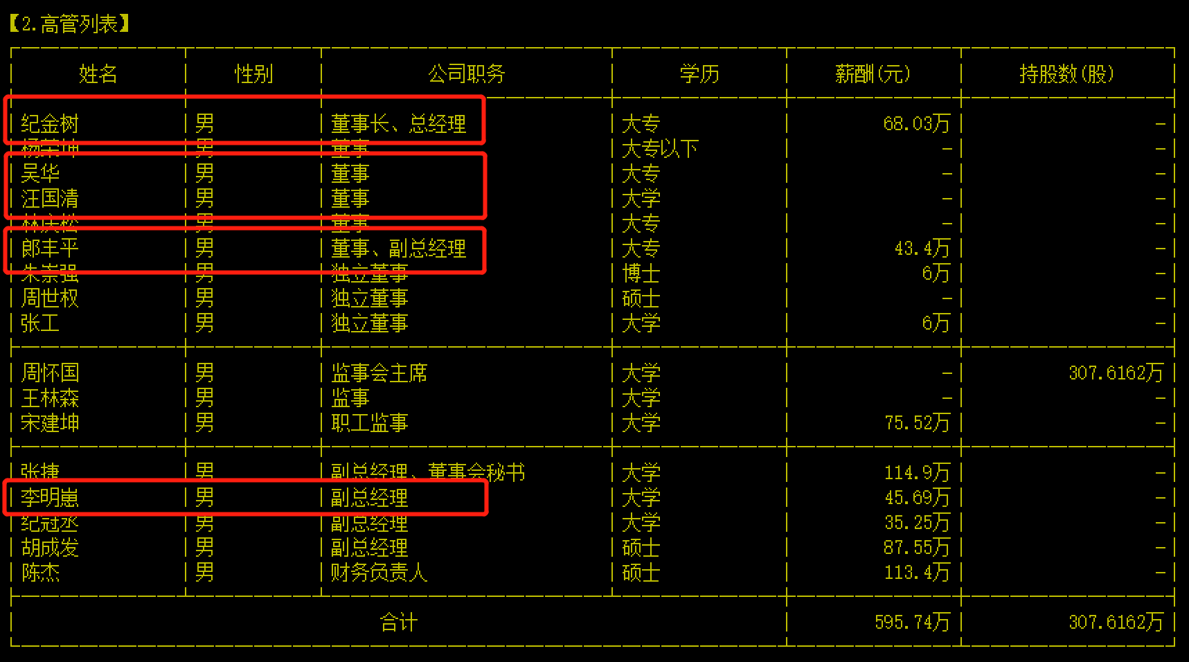 另外值得注意的是,吴华以及前述的郎丰平,也均在宏柏新材任职,前者为董事,后者为董事、副总经理。上述的纪金树,是宏柏新材的董事长、总经理。