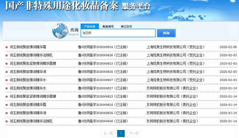 根据国家非特殊用途化妆品备案系统显示,润玉颜主要包括精华液、面膜、洁颜乳等品类。在上新一个月,推出10款产品后,就没有再推出过新品。目前,这10款产品均处于注销状态。