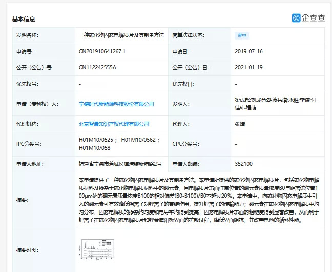 最后值得讲下国内的宁德时代。早在2016年,宁德时代就宣布在硫化物固态电池上的研发路径。但是关于其固态电池的信息一直处于保密状态,公开信息相当少,直到今年1月份,方才主动公开“一种固态电解质的制备方法”和“一种硫化物固态电解质片及其制备方法”两种固态电池相关专利,从专利摘要显示,上述专利旨在提高固态电解质的电导率和降低固固界面的阻抗,也就是前文中提到的固态电池短板问题。