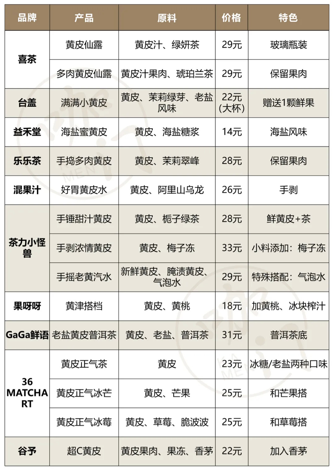 我复盘了10个品牌目前上架的黄皮产品,如下: