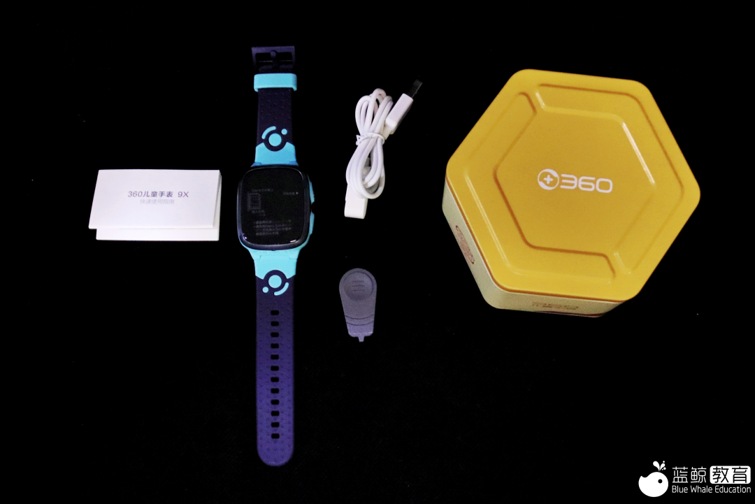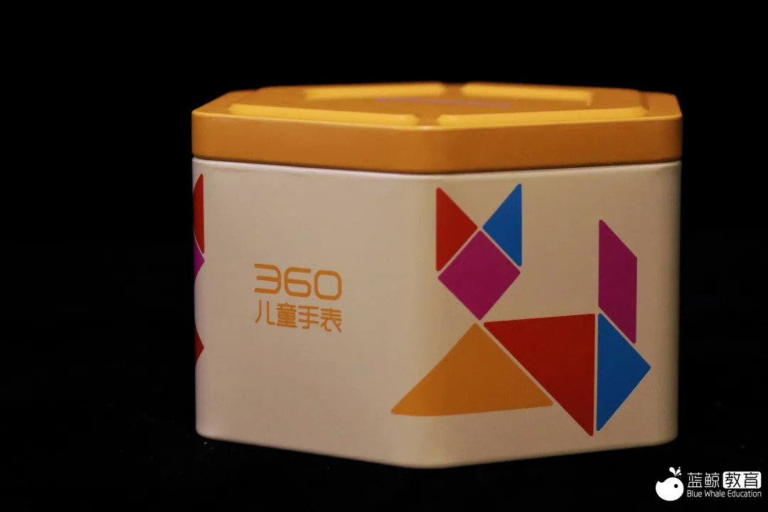 360儿童手表9x的外包装是一个六棱柱的铁质盒子,以七巧板的图形作为装饰,像是一个糖果盒。打开“罐头”,看到的是六边形的海绵所环绕的手表。360儿童手表9x的配件非常简单:卡针、磁吸式数据线以及说明书。